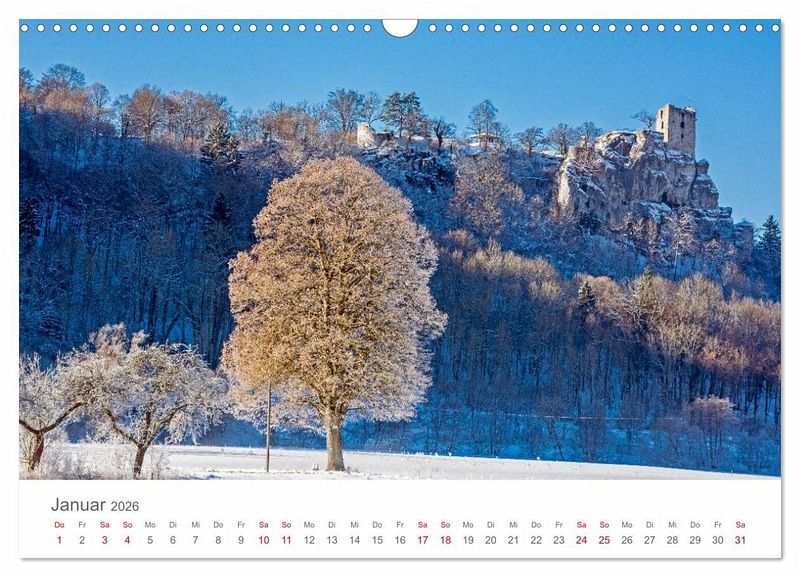 Januar: Winterlandschaft im Wiesenttal am Fuße der Burg Neideck