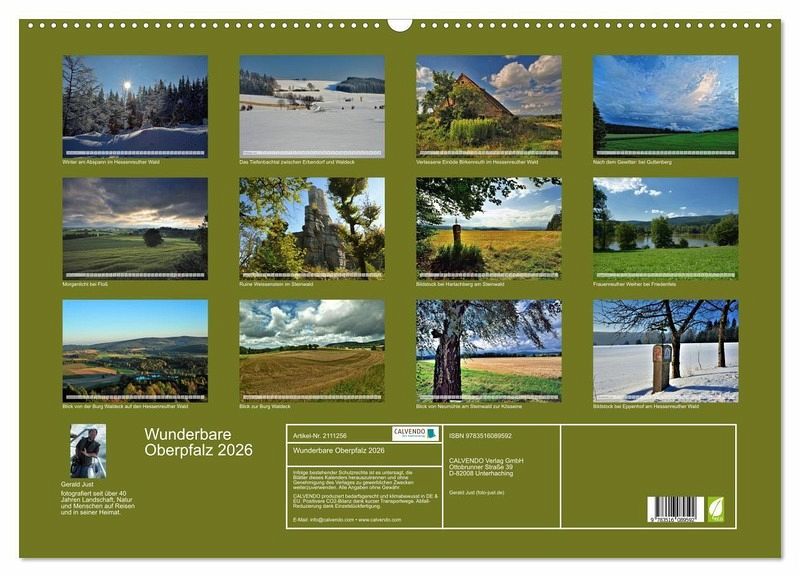 QUALITÄT - Hochwertiger Fotokalender mit 12 wunderschönen Motiven auf lichtbeständigem Bilderdruckpapier, robuste Spiralbindung mit Aufhängebügel.NACHHALTIG - deutliche Abfallreduzierung durch bedarfsgerechte Einzelstückfertigung, umweltfreundliches FSC-zertifiziertes Papier, Produktion in Deutschland, klimabewusste Logistik.PERFEKTES GESCHENK - Kalender für Freunde und Familie, für Kinder und Erwachsene, jung und alt, zu Weihnachten, Geburtstag oder zwischendurch.VIELFALT - Bildkalender in verschiedenen Formaten, z.B. DIN A5, DIN A4, DIN A3 sowie DIN A2. Ob Naturmotiv, Gemälde oder Fotos, ideal für ein persönliches Wohlfühlambiente.Landschaften und Landmarken um Erbendorf, den Hessenreuther Wald und den Steinwald von Autor(in): Gerald Just
