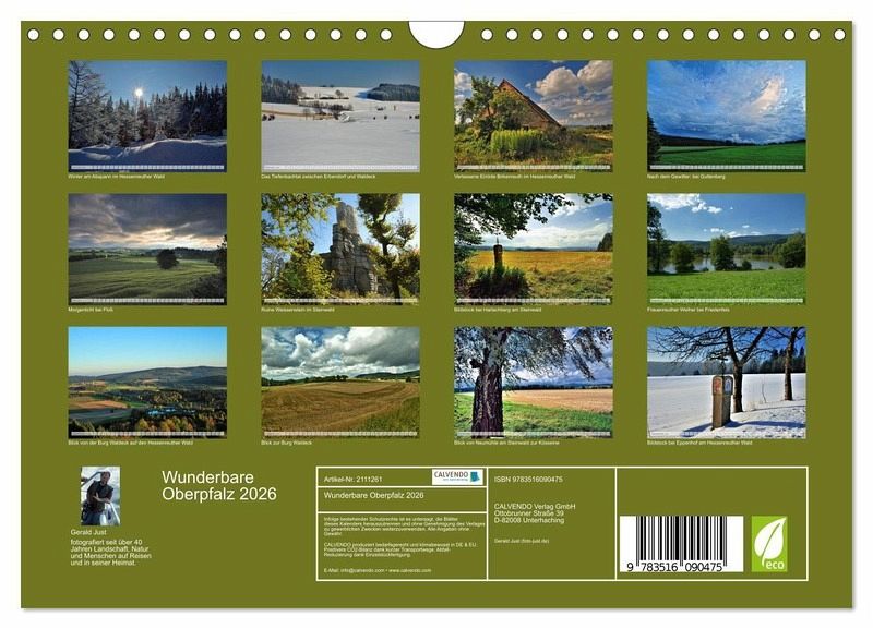 QUALITÄT - Hochwertiger Fotokalender mit 12 wunderschönen Motiven auf lichtbeständigem Bilderdruckpapier, robuste Spiralbindung mit Aufhängebügel.NACHHALTIG - deutliche Abfallreduzierung durch bedarfsgerechte Einzelstückfertigung, umweltfreundliches FSC-zertifiziertes Papier, Produktion in Deutschland, klimabewusste Logistik.PERFEKTES GESCHENK - Kalender für Freunde und Familie, für Kinder und Erwachsene, jung und alt, zu Weihnachten, Geburtstag oder zwischendurch.VIELFALT - Bildkalender in verschiedenen Formaten, z.B. DIN A5, DIN A4, DIN A3 sowie DIN A2. Ob Naturmotiv, Gemälde oder Fotos, ideal für ein persönliches Wohlfühlambiente.Landschaften und Landmarken um Erbendorf, den Hessenreuther Wald und den Steinwald von Autor(in): Gerald Just