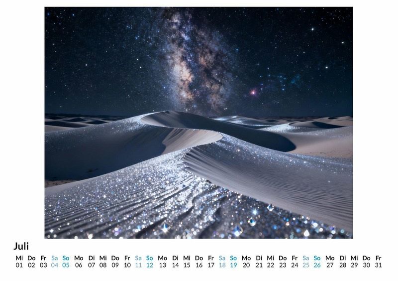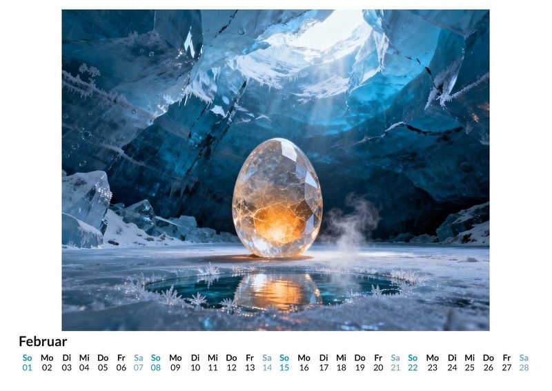 Wo endet die Realität und wo beginnt die Magie? Der Kalender "Wunderbare Welt der Natur & Fantasie" entführt in eine Welt, in der vertraute Landschaften auf surreale Weise neu interpretiert werden. Jeden Monat offenbart sich ein Motiv, das die Schönheit bekannter Naturphänomene mit Elementen des Unerwarteten und Fantastischen verbindet. Dieser Kalender ist eine ideale Wahl für: * Liebhaber von Fantasiewelten und mythologischen Erzählungen. * Menschen, die die Schönheit der Natur schätzen und sich für neue Perspektiven darauf begeistern. * Alle, die einen besonderen Wandschmuck suchen, der zum Träumen und Nachdenken anregt. Die zwölf Monatsbilder zeigen eine faszinierende Symbiose, die zum Staunen anregt. Leuchtende Pilzwälder erstrecken sich unter einem doppelten Mond, kristalline Berge ragen in einen violetten Himmel, fliegende Wale ziehen über nebelverhangene Täler und uralte Bäume tragen Sternbilder in ihren Ästen. Jedes Bild wurde durch das Zusammenspiel von menschlicher Vorstellungskraft und der Rechenleistung moderner Algorithmen erschaffen, was zu völlig neuen visuellen Kompositionen führt, die vertraut und fremd zugleich wirken. Was dieser Kalender bietet: * Zwölf sorgfältig ausgewählte Monatsmotive, die Natur und Fantasie vereinen. * Ein praktisches Kalendarium für die Organisation von Terminen im Alltag. * Ein dekorativer Wandschmuck, der das ganze Jahr über Freude bereitet. Dieser Kalender ist mehr als ein Zeitplaner; er ist ein Fenster in eine andere Wirklichkeit, das jeden Raum bereichert. Eine Einladung, die zwölf einzigartigen Welten zu entdecken, die darauf warten, Monat für Monat betrachtet zu werden und die Fantasie auf eine kleine Reise zu schicken.