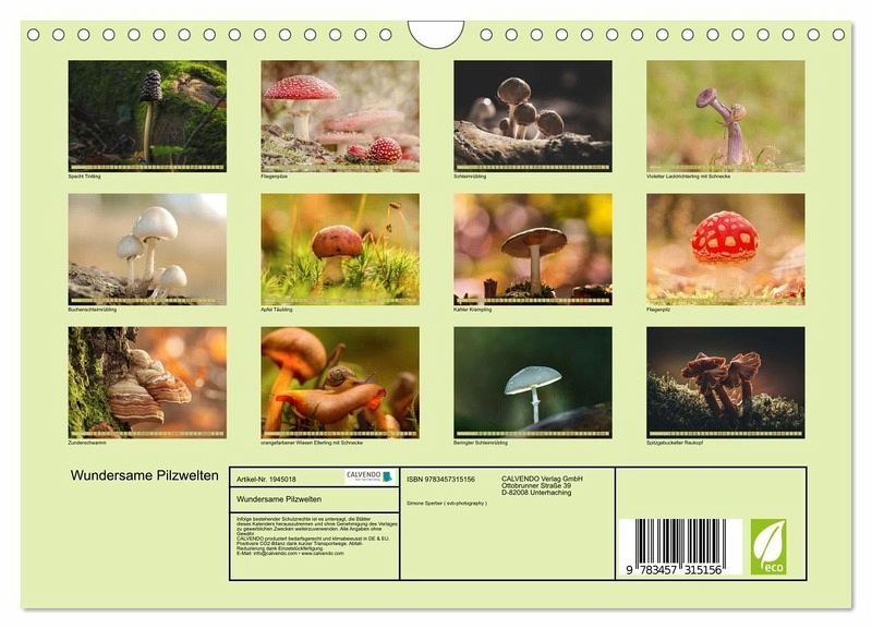 QUALITÄT - Hochwertiger Fotokalender mit 12 wunderschönen Motiven auf lichtbeständigem Bilderdruckpapier, robuste Spiralbindung mit Aufhängebügel.NACHHALTIG - deutliche Abfallreduzierung durch bedarfsgerechte Einzelstückfertigung, umweltfreundliches FSC-zertifiziertes Papier, Produktion in Deutschland, klimabewusste Logistik.PERFEKTES GESCHENK - Kalender für Freunde und Familie, für Kinder und Erwachsene, jung und alt, zu Weihnachten, Geburtstag oder zwischendurch.VIELFALT - Bildkalender in verschiedenen Formaten, z.B. DIN A5, DIN A4, DIN A3 sowie DIN A2. Ob Naturmotiv, Gemälde oder Fotos, ideal für ein persönliches Wohlfühlambiente.Die besondere Welt der Pilze erleben. von Autor(in): Simone Sperber