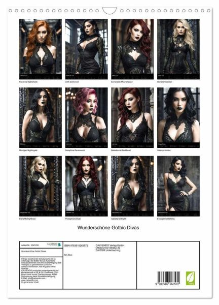 Tauchen Sie ein in die düstere Eleganz des Gothic-Stils mit diesem faszinierenden KI Kalender! Jeden Monat präsentiert Ihnen dieser Kalender eine atemberaubende Frau im Gothic-Stil. Von mysteriösen Schönheiten bis hin zu verführerischen Divas - jede Seite ist ein Fest für die Sinne. Lassen Sie sich von der düsteren Romantik verführen und verschönern Sie Ihr Zuhause oder Büro mit diesem einzigartigen Kunstwerk. Holen Sie sich jetzt unseren Gothic-Divas-Kalender und lassen Sie sich jeden Tag von der dunklen Schönheit inspirieren!