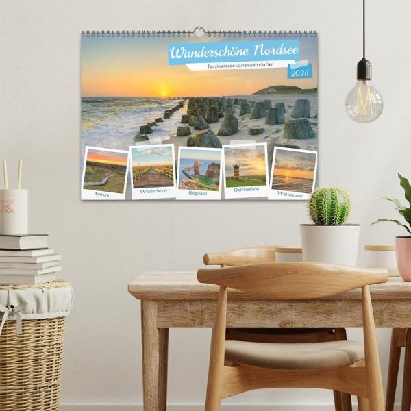 Tauchen Sie ein in die Schönheit der Nordsee mit unserem Kalender "Wunderschöne Nordsee - Faszinierende Küstenlandschaften". Jeden Monat werden Sie von einer neuen, atemberaubenden Küstenlandschaft begrüßt - von den sanften Dünen Sylts bis zu den dramatischen Klippen Helgolands. Lassen Sie sich von den lebhaften Farben Amrums verzaubern und spüren Sie die schöne Natur Ostfrieslands. Dieser Kalender ist nicht nur ein Zeitmesser, sondern ein Fenster zu den faszinierendsten Orten der Nordsee, festgehalten in hochwertigen Bildern, die die Seele berühren. Ideal für Liebhaber der Meereslandschaften oder als Geschenk, das das ganze Jahr über Freude bereitet.