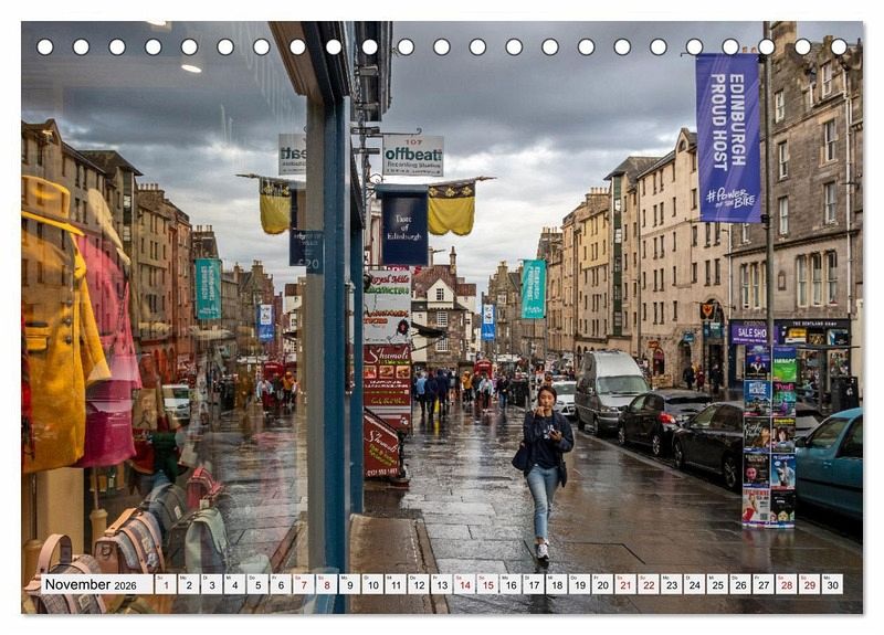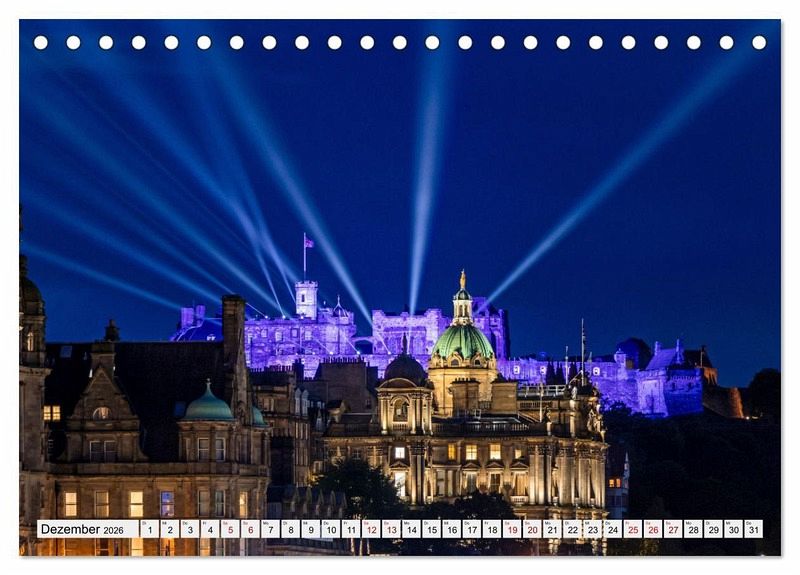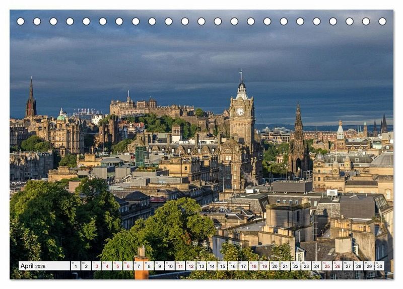 Edinburgh ist wunderschön! Entdecken Sie mit diesem Kalender auf 13 sorgfältig ausgewählten Fotografien die Höhepunkte der schottischen Hauptstadt. Erkunden Sie die Royal Mile vom Holyroodhouse Palace bis hinauf zum Edinburgh Castle, und begeistern Sie sich für den Ausblick vom Calton Hill auf das schönste Panorama der Stadt. Die Victoria Street hinunter geht es zum Grassmarket, einem beliebten Treffpunkt für Jung und Alt. Die Gebäude am St. James Square und das Parlamentsgebäude bilden den modernen Kontrast zur historischen Architektur des Stadtzentrums. Zur Festivalzeit im Sommer erstrahlt Edinburgh Castle abends in den buntesten Farben. Genießen Sie Monat für Monat eine neue Ansicht dieser altehrwürdigen Stadt und lassen Sie sich von der besondere Atmosphäre verzaubern.