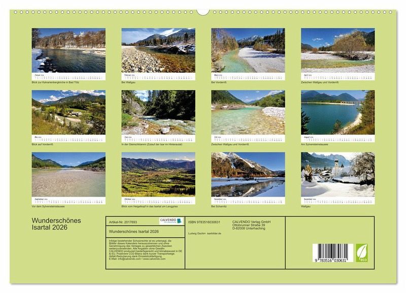 Kommen Sie mit auf die Reise durch das Isartal. Vom Quellgebiet in Tirol, bis in den Isarwinkel bei Bad Tölz, zeigt dieser Kalender die wunderschöne Landschaft des Isartals im Wandel der Jahreszeiten.