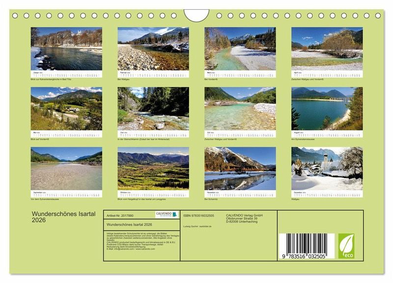 Kommen Sie mit auf die Reise durch das Isartal. Vom Quellgebiet in Tirol, bis in den Isarwinkel bei Bad Tölz, zeigt dieser Kalender die wunderschöne Landschaft des Isartals im Wandel der Jahreszeiten.