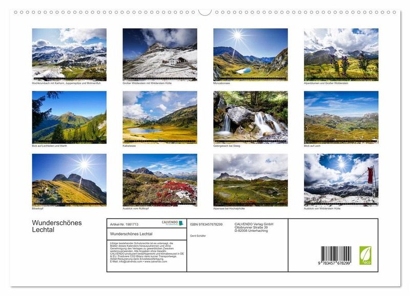 PREMIUM-LINIE - Brillanter Fotokalender mit 12 wunderschönen Motiven, Kunstdruck in Hochglanz in Museumsqualität.QUALITÄT - edle Materialien, stabile Rückwand mit 2 innovativen Einstecktaschen für eine optimale Präsentation an der Wand.NACHHALTIG - deutliche Abfallreduzierung durch bedarfsgerechte Einzelstückfertigung, umweltfreundliches FSC-zertifiziertes Papier, Produktion in Deutschland, klimabewusste Logistik.PERFEKTES GESCHENK - Kalender für Freunde und Familie, für Kinder und Erwachsene, jung und alt, zu Weihnachten, Geburtstag oder zwischendurch.Das Lechtal - traumhafte Gebirgslandschaften. von Autor(in): Gerd Schäfer