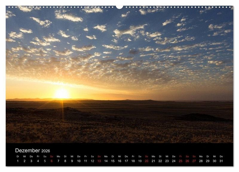 Dezember: Sonnenuntergang in der Namib-Wüste