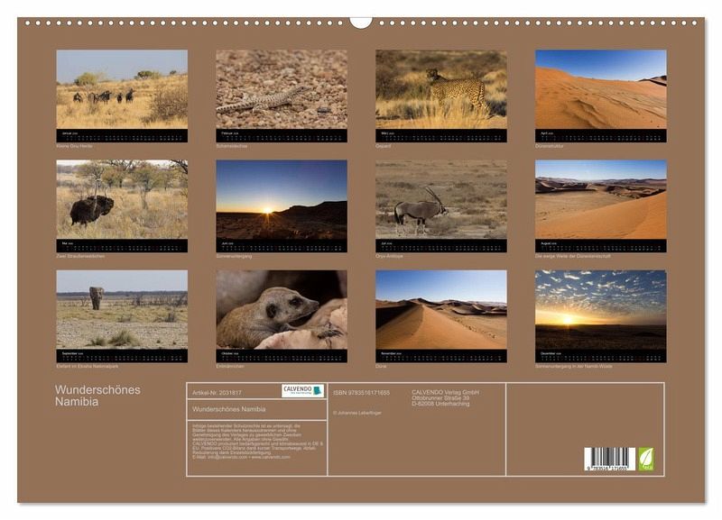 QUALITÄT - Hochwertiger Fotokalender mit 12 wunderschönen Motiven auf lichtbeständigem Bilderdruckpapier, robuste Spiralbindung mit Aufhängebügel.NACHHALTIG - deutliche Abfallreduzierung durch bedarfsgerechte Einzelstückfertigung, umweltfreundliches FSC-zertifiziertes Papier, Produktion in Deutschland, klimabewusste Logistik.PERFEKTES GESCHENK - Kalender für Freunde und Familie, für Kinder und Erwachsene, jung und alt, zu Weihnachten, Geburtstag oder zwischendurch.VIELFALT - Bildkalender in verschiedenen Formaten, z.B. DIN A5, DIN A4, DIN A3 sowie DIN A2. Ob Naturmotiv, Gemälde oder Fotos, ideal für ein persönliches Wohlfühlambiente.Fotos aus dem wunderschönen Namibia von Autor(in): Johannes Garschhammer