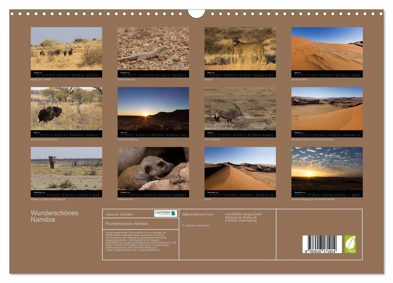 QUALITÄT - Hochwertiger Fotokalender mit 12 wunderschönen Motiven auf lichtbeständigem Bilderdruckpapier, robuste Spiralbindung mit Aufhängebügel.NACHHALTIG - deutliche Abfallreduzierung durch bedarfsgerechte Einzelstückfertigung, umweltfreundliches FSC-zertifiziertes Papier, Produktion in Deutschland, klimabewusste Logistik.PERFEKTES GESCHENK - Kalender für Freunde und Familie, für Kinder und Erwachsene, jung und alt, zu Weihnachten, Geburtstag oder zwischendurch.VIELFALT - Bildkalender in verschiedenen Formaten, z.B. DIN A5, DIN A4, DIN A3 sowie DIN A2. Ob Naturmotiv, Gemälde oder Fotos, ideal für ein persönliches Wohlfühlambiente.Fotos aus dem wunderschönen Namibia von Autor(in): Johannes Garschhammer