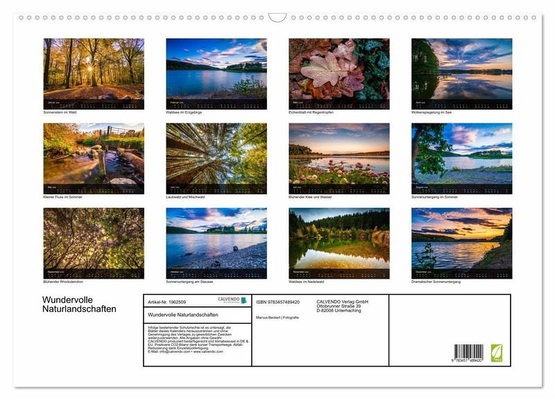QUALITÄT - Hochwertiger Fotokalender mit 12 wunderschönen Motiven auf lichtbeständigem Bilderdruckpapier, robuste Spiralbindung mit Aufhängebügel.NACHHALTIG - deutliche Abfallreduzierung durch bedarfsgerechte Einzelstückfertigung, umweltfreundliches FSC-zertifiziertes Papier, Produktion in Deutschland, klimabewusste Logistik.PERFEKTES GESCHENK - Kalender für Freunde und Familie, für Kinder und Erwachsene, jung und alt, zu Weihnachten, Geburtstag oder zwischendurch.VIELFALT - Bildkalender in verschiedenen Formaten, z.B. DIN A5, DIN A4, DIN A3 sowie DIN A2. Ob Naturmotiv, Gemälde oder Fotos, ideal für ein persönliches Wohlfühlambiente.Die einzigartige Natur mit ihre vielfältigen Landschaften von Autor(in): Marcus Beckert Fotografie