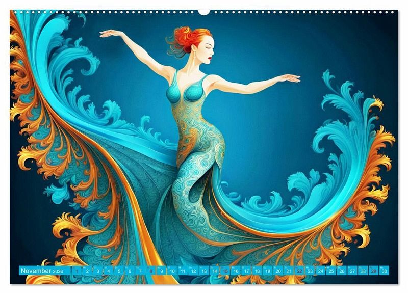 Dieser einzigartige Kalender präsentiert eine außergewöhnliche Sammlung von Tanzfiguren. Jeder Monat ist eine Reise zu einer faszinierenden Tänzerin, tauchen Sie ein in eine Welt voller Eleganz und Anmut. Dieser Kalender wird Ihre Wände erhellen und Sie zu mittanzen ermutigen.