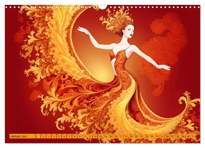 Dieser einzigartige Kalender präsentiert eine außergewöhnliche Sammlung von Tanzfiguren. Jeder Monat ist eine Reise zu einer faszinierenden Tänzerin, tauchen Sie ein in eine Welt voller Eleganz und Anmut. Dieser Kalender wird Ihre Wände erhellen und Sie zu mittanzen ermutigen.