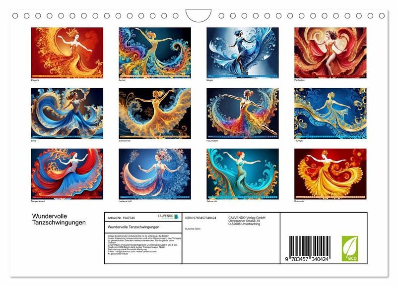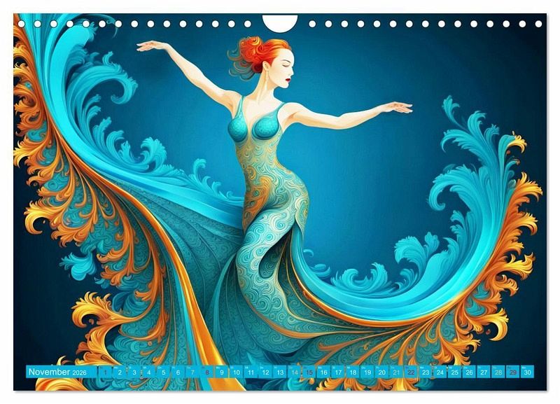 Dieser einzigartige Kalender präsentiert eine außergewöhnliche Sammlung von Tanzfiguren. Jeder Monat ist eine Reise zu einer faszinierenden Tänzerin, tauchen Sie ein in eine Welt voller Eleganz und Anmut. Dieser Kalender wird Ihre Wände erhellen und Sie zu mittanzen ermutigen.