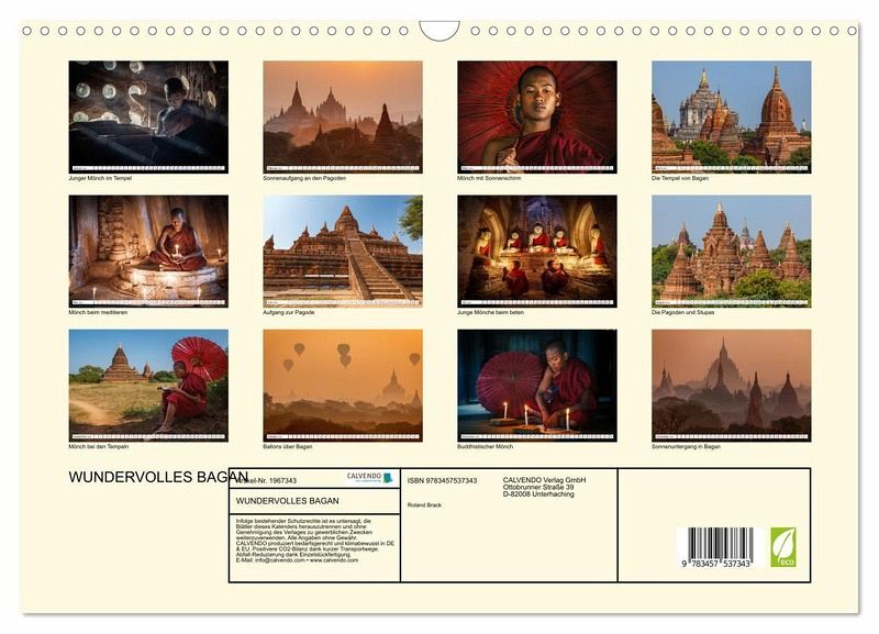 QUALITÄT - Hochwertiger Fotokalender mit 12 wunderschönen Motiven auf lichtbeständigem Bilderdruckpapier, robuste Spiralbindung mit Aufhängebügel.NACHHALTIG - deutliche Abfallreduzierung durch bedarfsgerechte Einzelstückfertigung, umweltfreundliches FSC-zertifiziertes Papier, Produktion in Deutschland, klimabewusste Logistik.PERFEKTES GESCHENK - Kalender für Freunde und Familie, für Kinder und Erwachsene, jung und alt, zu Weihnachten, Geburtstag oder zwischendurch.VIELFALT - Bildkalender in verschiedenen Formaten, z.B. DIN A5, DIN A4, DIN A3 sowie DIN A2. Ob Naturmotiv, Gemälde oder Fotos, ideal für ein persönliches Wohlfühlambiente.Ein Rundgang durch die Tempel, Stupas und Pagoden von Bagan in Myanmar von Autor(in): Roland Brack