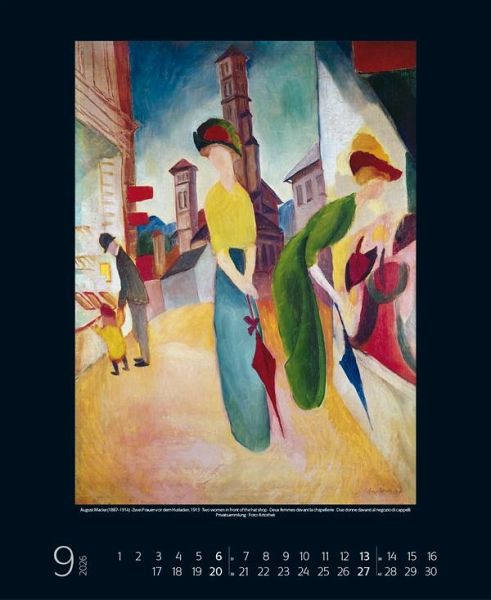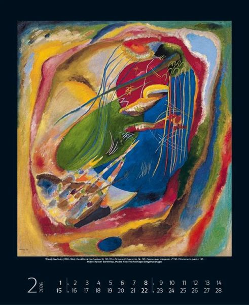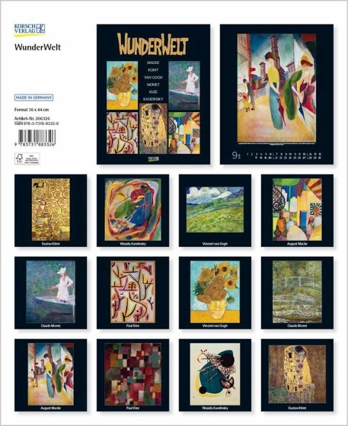 Dieser Kalender ist eine Einladung, der Augenlust zu frönen, die kleinen Dinge und die großen Gefühle zu genießen und die Heiterkeit des Herzens in der Wunderwelt der Kunst zu entdecken. Meisterhafte Werke von Kandinsky, Macke, Klimt, Klee, van Gogh und Monet entführen den Betrachter in diesen einzigartigen Kosmos der Kunst.