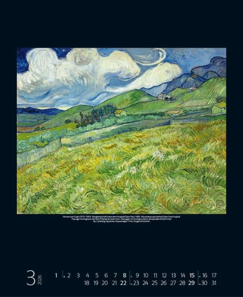 Kunstkalender groß im Hochformat Hervorragende Druckqualität bis ins Detail Neutrales Kalendarium für alle Länder FSC zertifiziertes Papier aus verantwortungsvollen Quellen Schickes passepartout Design für einen wertigen Anblick Ihres Wandkalenders
