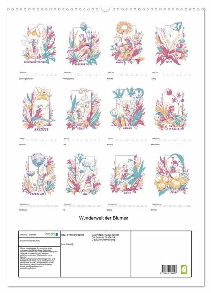 QUALITÄT - Hochwertiger Fotokalender mit 12 wunderschönen Motiven auf lichtbeständigem Bilderdruckpapier, robuste Spiralbindung mit Aufhängebügel.NACHHALTIG - deutliche Abfallreduzierung durch bedarfsgerechte Einzelstückfertigung, umweltfreundliches FSC-zertifiziertes Papier, Produktion in Deutschland, klimabewusste Logistik.PERFEKTES GESCHENK - Kalender für Freunde und Familie, für Kinder und Erwachsene, jung und alt, zu Weihnachten, Geburtstag oder zwischendurch.VIELFALT - Bildkalender in verschiedenen Formaten, z.B. DIN A5, DIN A4, DIN A3 sowie DIN A2. Ob Naturmotiv, Gemälde oder Fotos, ideal für ein persönliches Wohlfühlambiente.Tauchen Sie ein in eine zauberhafte Welt, in der gezeichnete Blumen von zarten Elfen bewohnt werden. von Autor(in): Luca Schmidt