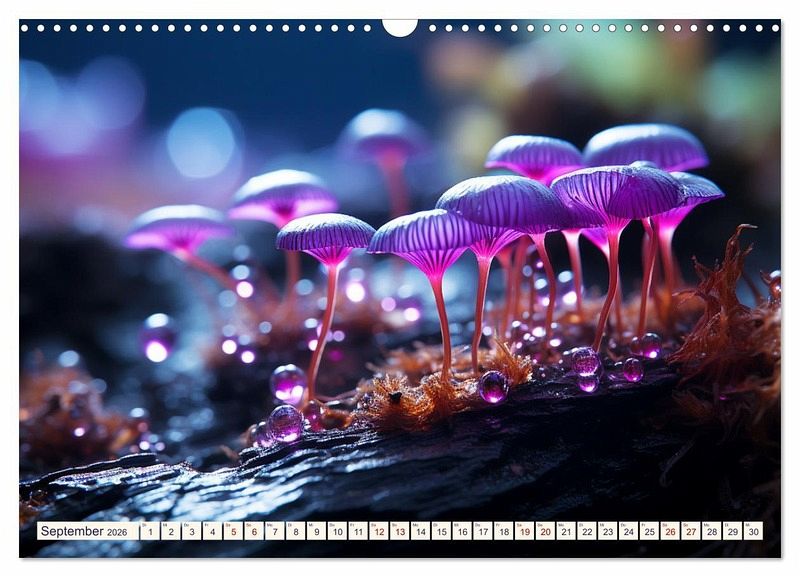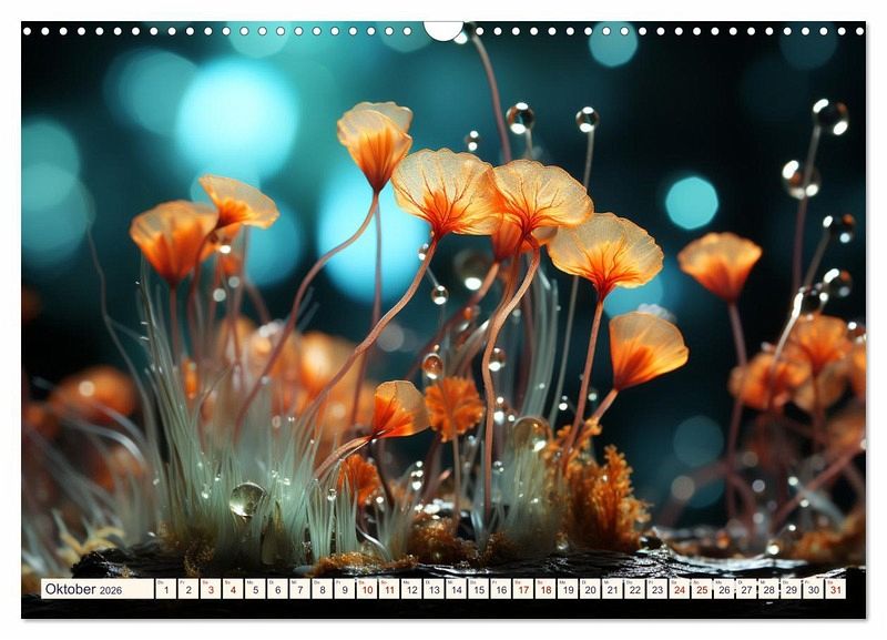 Entdecken Sie die faszinierende Welt des Mikrokosmos mit dem neuen Kalender. Jeden Monat erwartet Sie ein atemberaubendes Foto von Pilzen, Moossporen oder anderen mikroskopischen Wundern, die von künstlicher Intelligenz generiert wurden. Lassen Sie sich von den leuchtenden Farben und Formen verzaubern und tauchen Sie ein in eine Welt, die Sie mit bloßem Auge so nicht sehen. Der Kalender ist das perfekte Geschenk für Naturfreunde, Hobbyfotografen oder einfach für sich selbst.
