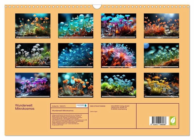 QUALITÄT - Hochwertiger Fotokalender mit 12 wunderschönen Motiven auf lichtbeständigem Bilderdruckpapier, robuste Spiralbindung mit Aufhängebügel.NACHHALTIG - deutliche Abfallreduzierung durch bedarfsgerechte Einzelstückfertigung, umweltfreundliches FSC-zertifiziertes Papier, Produktion in Deutschland, klimabewusste Logistik.PERFEKTES GESCHENK - Kalender für Freunde und Familie, für Kinder und Erwachsene, jung und alt, zu Weihnachten, Geburtstag oder zwischendurch.VIELFALT - Bildkalender in verschiedenen Formaten, z.B. DIN A5, DIN A4, DIN A3 sowie DIN A2. Ob Naturmotiv, Gemälde oder Fotos, ideal für ein persönliches Wohlfühlambiente.Der faszinierende Kalender mit KI generierten Fotos von mikroskopischen Wundern in leuchtenden Farben. von Autor(in): Catill