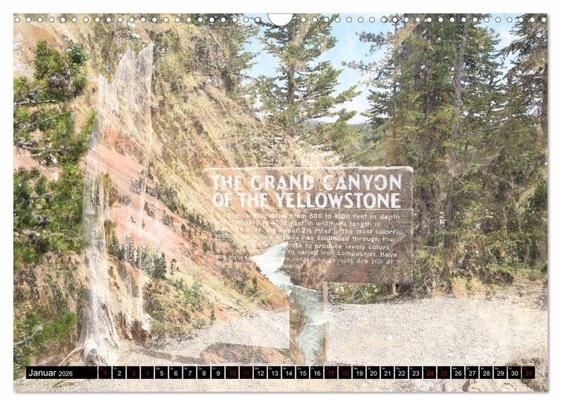 Januar: Grand Canon of Yellowstone: Einzigartige Schlucht des Yellowstone River (Fotomontage).