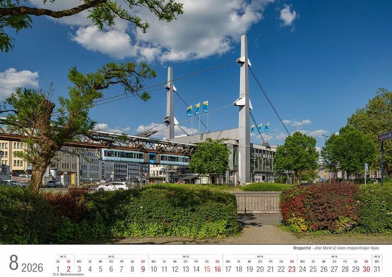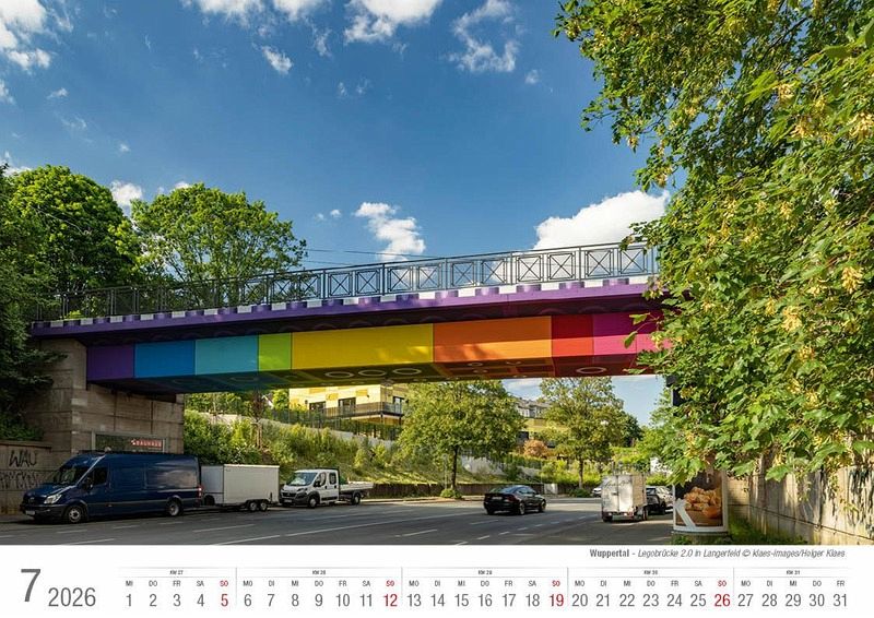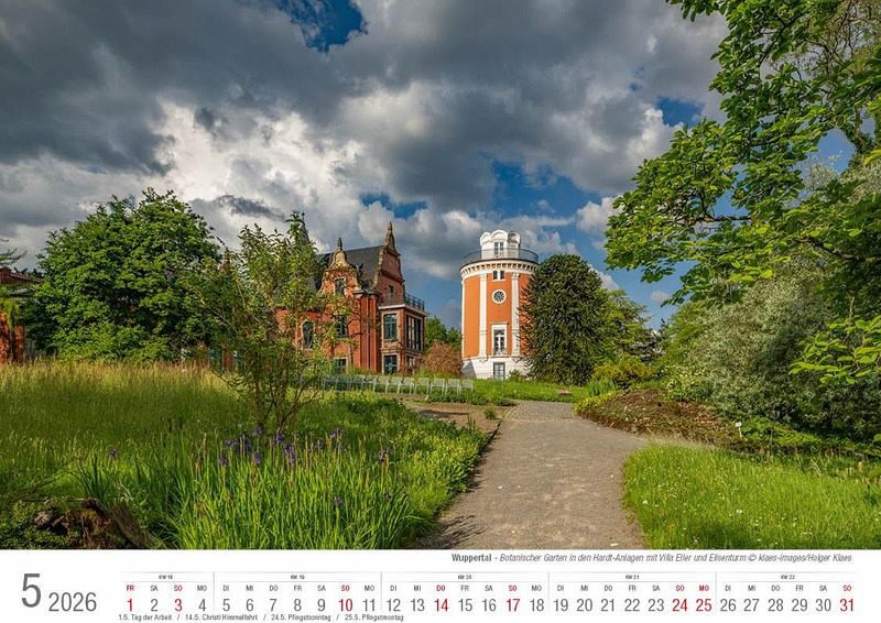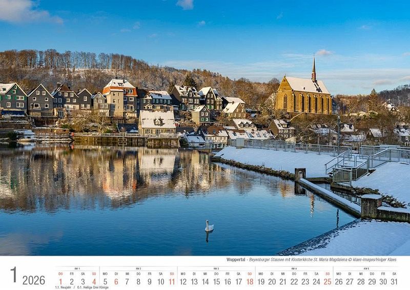 Der hochwertig verarbeitete Bildkalender Wuppertal 2026 im A4 Format führt mit aktuellen, stimmungsvollen und repräsentativen Aufnahmen durch die bergische Metropole. 14 Seiten, Bilderdruck matt 170 g + stabiler Graukarton aus Buchbinderpappe als Rückwand vor dem Indexblatt. Format A4, ca. 21 x 29,7 cm quer, Spiralbindung.
