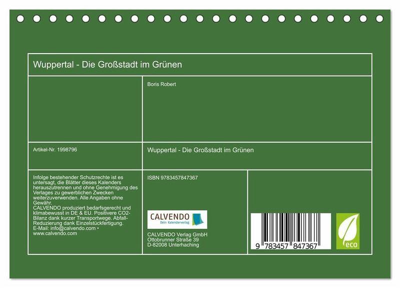 QUALITÄT - Hochwertiger Fotokalender mit 12 wunderschönen Motiven auf lichtbeständigem Bilderdruckpapier, robuste Spiralbindung.NACHHALTIG - deutliche Abfallreduzierung durch bedarfsgerechte Einzelstückfertigung, umweltfreundliches FSC-zertifiziertes Papier, Produktion in Deutschland, klimabewusste Logistik.PERFEKTES GESCHENK - Kalender für Freunde und Familie, für Kinder und Erwachsene, jung und alt, zu Weihnachten, Geburtstag oder zwischendurch.VIELFALT - Bildkalender in verschiedenen Formaten, z.B. DIN A5, DIN A4, DIN A3 sowie DIN A2. Ob Naturmotiv, Gemälde oder Fotos, ideal für ein persönliches Wohlfühlambiente.Wuppertal ist die bergische Metropole an der Wupper. Sie bietet eine herausragende Kunstsammlung und jede Menge Plätze für Erholung. von Autor(in): Boris Flör