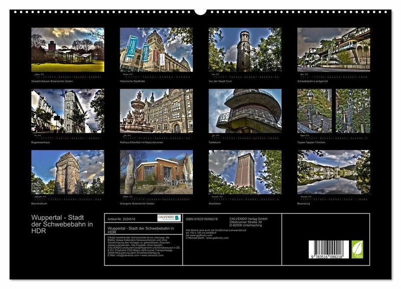 PREMIUM-LINIE - Brillanter Fotokalender mit 12 wunderschönen Motiven, Kunstdruck in Hochglanz in Museumsqualität.QUALITÄT - edle Materialien, stabile Rückwand mit 2 innovativen Einstecktaschen für eine optimale Präsentation an der Wand.NACHHALTIG - deutliche Abfallreduzierung durch bedarfsgerechte Einzelstückfertigung, umweltfreundliches FSC-zertifiziertes Papier, Produktion in Deutschland, klimabewusste Logistik.PERFEKTES GESCHENK - Kalender für Freunde und Familie, für Kinderund Erwachsene, jung und alt, zu Weihnachten, Geburtstag oder zwischendurch.Wuppertal - Stadt der Schwebebahn, Treppen, Türme und klassischen Gebäude in HDR von Autor(in): Michael Barth