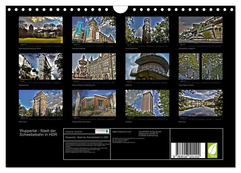QUALITÄT - Hochwertiger Fotokalender mit 12 wunderschönen Motiven auf lichtbeständigem Bilderdruckpapier, robuste Spiralbindung mit Aufhängebügel.NACHHALTIG - deutliche Abfallreduzierung durch bedarfsgerechte Einzelstückfertigung, umweltfreundliches FSC-zertifiziertes Papier, Produktion in Deutschland, klimabewusste Logistik.PERFEKTES GESCHENK - Kalender für Freunde und Familie, für Kinder und Erwachsene, jung und alt, zu Weihnachten, Geburtstag oder zwischendurch.VIELFALT - Bildkalender in verschiedenen Formaten, z.B. DIN A5, DIN A4, DIN A3 sowie DIN A2. Ob Naturmotiv, Gemälde oderFotos, ideal für ein persönliches Wohlfühlambiente.Wuppertal - Stadt der Schwebebahn, Treppen, Türme und klassischen Gebäude in HDR von Autor(in): Michael Barth