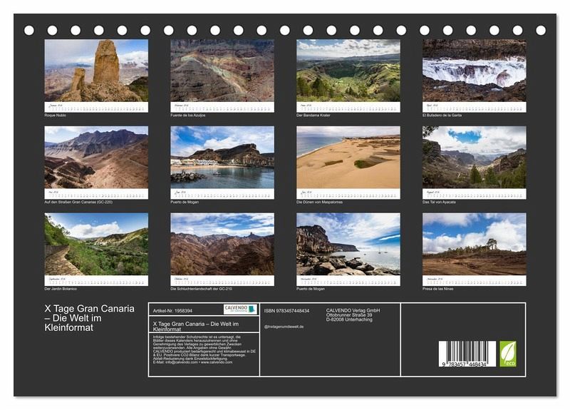 QUALITÄT - Hochwertiger Fotokalender mit 12 wunderschönen Motiven auf lichtbeständigem Bilderdruckpapier, robuste Spiralbindung.NACHHALTIG - deutliche Abfallreduzierung durch bedarfsgerechte Einzelstückfertigung, umweltfreundliches FSC-zertifiziertes Papier, Produktion in Deutschland, klimabewusste Logistik.PERFEKTES GESCHENK - Kalender für Freunde und Familie, für Kinder und Erwachsene, jung und alt, zu Weihnachten, Geburtstag oder zwischendurch.VIELFALT - Bildkalender in verschiedenen Formaten,z.B. DIN A5, DIN A4, DIN A3 sowie DIN A2. Ob Naturmotiv, Gemälde oder Fotos, ideal für ein persönliches Wohlfühlambiente.Kommen Sie mit auf die Insel Gran Canaria, die viele kleine Mikrokontinente in sich vereint und lassen Sie sich von ihrer Vielfältigkeit verzaubern. von Autor(in): Inxtagenumdiewelt.de