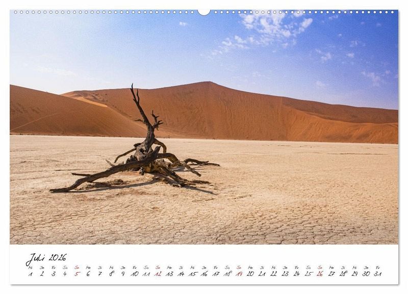 Muss man Namibia mit wenigen Worten beschreiben so wäre das wohl mit den Worten: Weite, Fantastische Tierbegegnungen und unglaubliche Naturräume. Das Land im Süden Afrikas fasziniert mit seiner rauen Küste, der riesigen Namib Wüste, dem grandiosen Etosha Nationalpark und dem grünen Caprivi Streifen. Auf einem Roadtrip durch das Land Namibia taucht man tief ein in diese einzigartigen Landschaften und begegnet immer wieder Elefanten, Gnus und Oryxantilopen. Mit diesem Kalender begleitet Sie die Schönheit von Namibia durch das ganze Jahr.