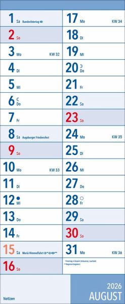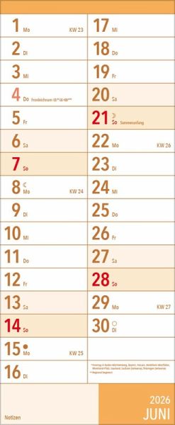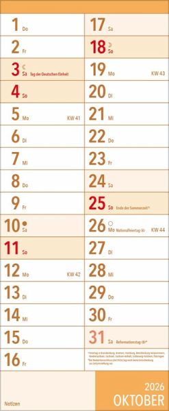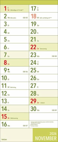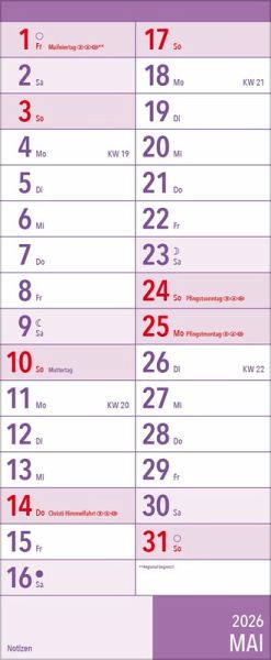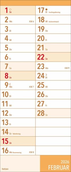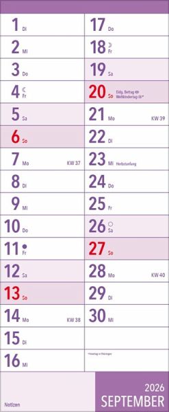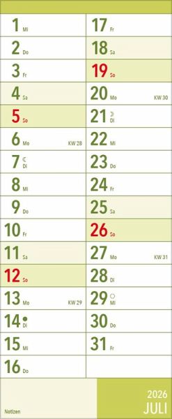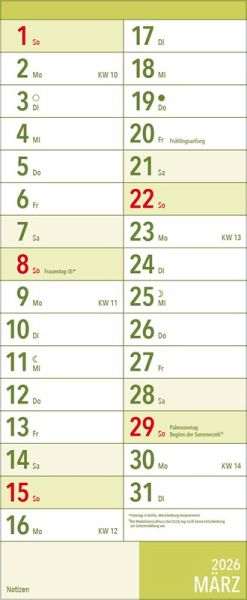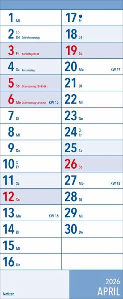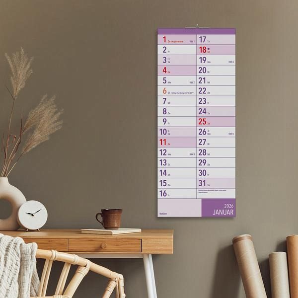 - Format: 19 x 46 cm; schmaler Wandkalender mit extra viel Platz für Termine