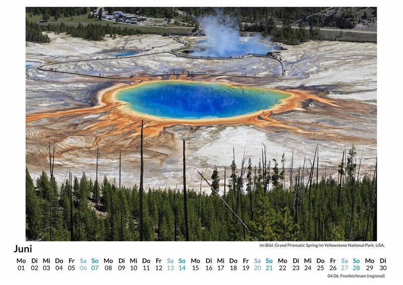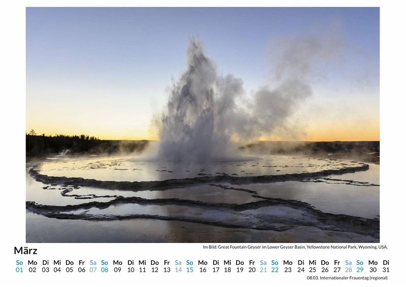 Entdecken Sie die atemberaubende Schönheit des Yellowstone Nationalparks in Ihrem Zuhause! Unser hochwertiger Wandkalender entführt Sie Monat für Monat in die faszinierende Wildnis der USA. Genießen Sie 12 liebevoll ausgewählte Motive, die die majestätischen Landschaften, beeindruckenden Geysire und die einzigartige Tierwelt des ältesten Nationalparks der Welt zeigen. Gedruckt auf lichtbeständigem Bilderdruckpapier, bleibt die Farbbrillanz das ganze Jahr über erhalten. Nachhaltig in Deutschland auf FSC-zertifiziertem Papier produziert, ist dieser Kalender nicht nur ein optisches Highlight, sondern auch umweltfreundlich. Holen Sie sich ein Stück Natur an Ihre Wand - perfekt für Naturliebhaber! Hochwertig Erleben Sie ein Jahr voller Eleganz mit unserem Premium-Fotokalender. Jedes der 12 Motive ist auf hochwertigem, lichtbeständigem Bilderdruckpapier gedruckt, um die Lebendigkeit jedes Bildes zu bewahren. Die robuste Spiralbindung gewährleistet Langlebigkeit und einfache Handhabung. Nachhaltig Unser Engagement für die Umwelt spiegelt sich in jedem Exemplar wider. Durch die Produktion auf Abruf reduzieren wir signifikant unseren Abfall. Wir verwenden ausschließlich umweltfreundliches, FSC-zertifiziertes Papier. Stolz gefertigt in Deutschland, achten wir bei unserer Logistik auf Klimaschutz, um unseren ökologischen Fußabdruck zu minimieren. Das ideale Geschenk Dieser Kalender ist das perfekte Präsent für jeden Anlass - ob Weihnachten, Geburtstage oder einfach als liebevolle Aufmerksamkeit zwischendurch. Geeignet für Freunde, Familie, Kinder und Erwachsene gleichermaßen, bereichert er jedes Zuhause mit seiner Vielfalt und Schönheit, unabhängig vom Alter der Beschenkten.