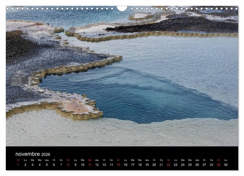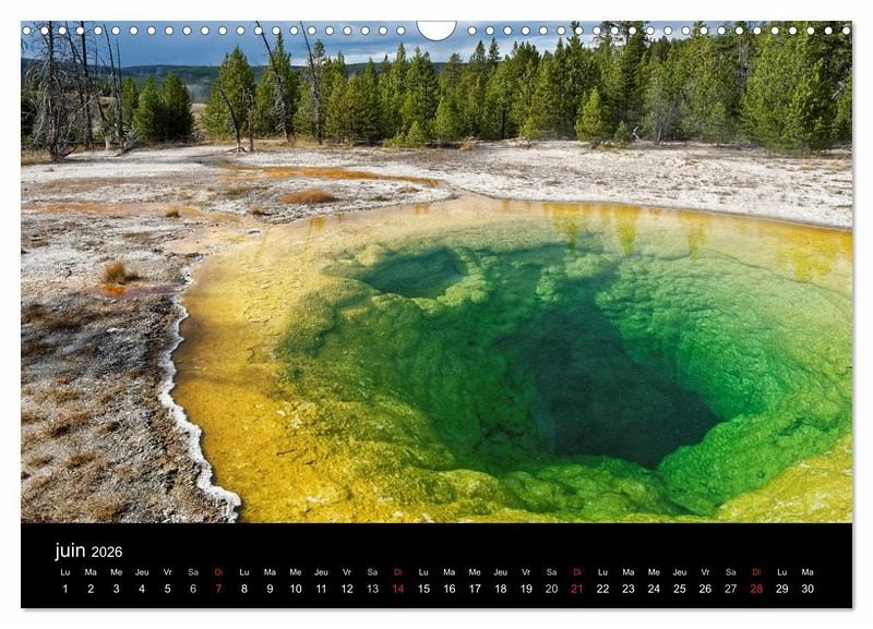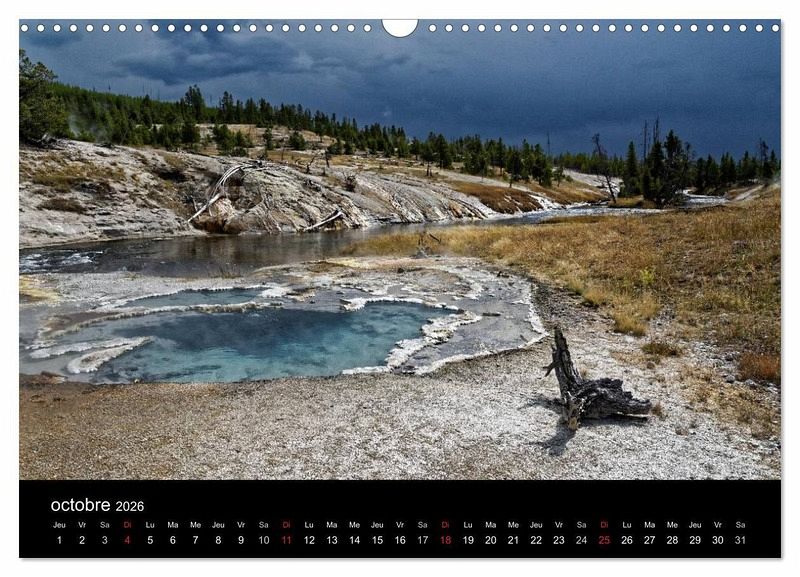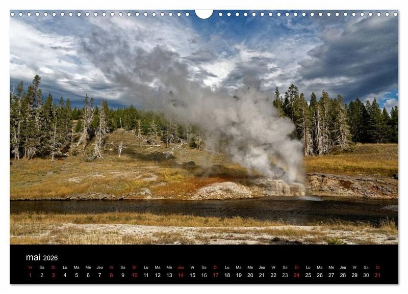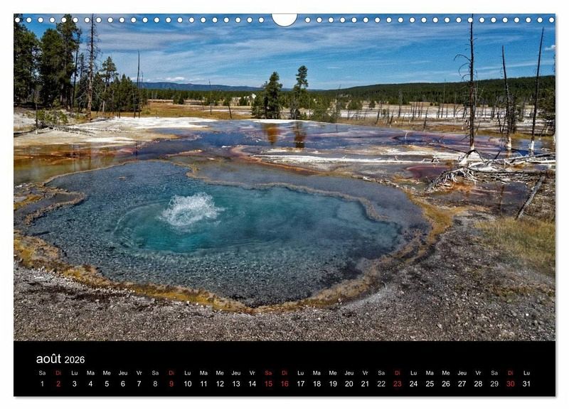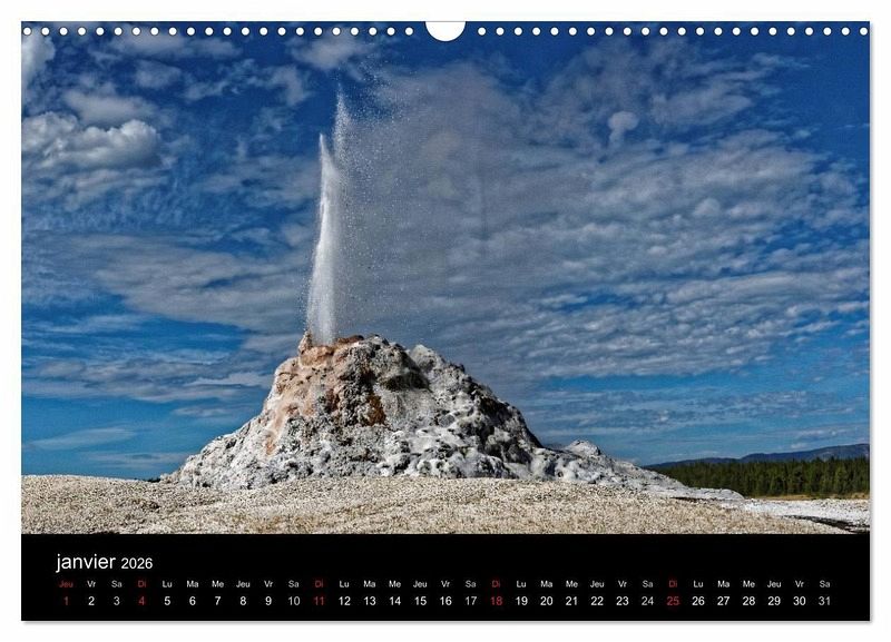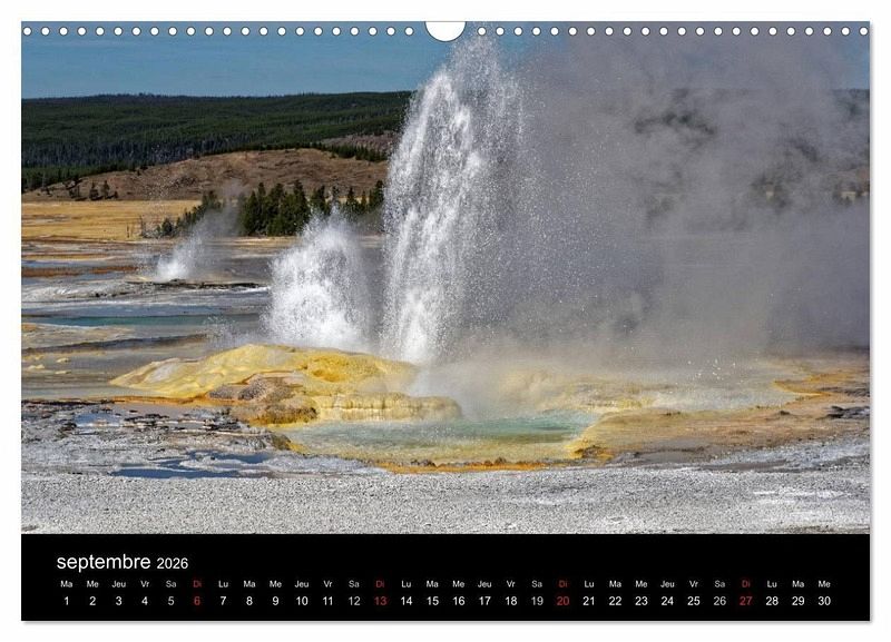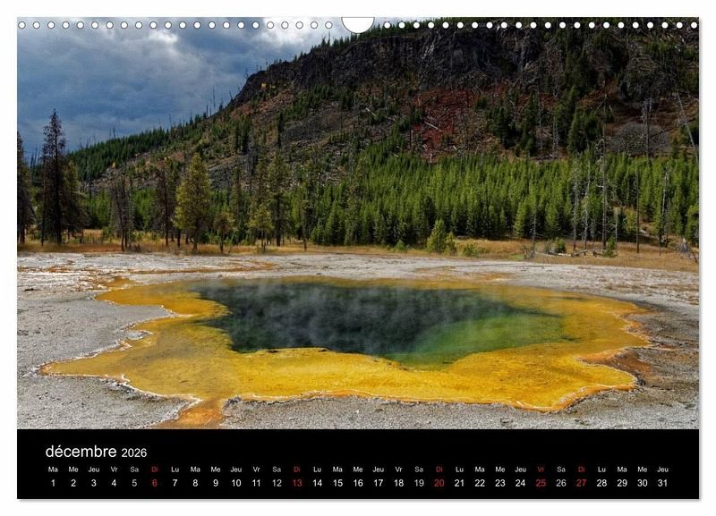 Deux tiers des geysers de la planète et de nombreuses sources chaudes se trouvent dans le parc de Yellowstone. Ce calendrier a été créé pour vous montrer la beauté et la fabuleuse variété de ces phénomènes géothermiques en activité quasi permanente.