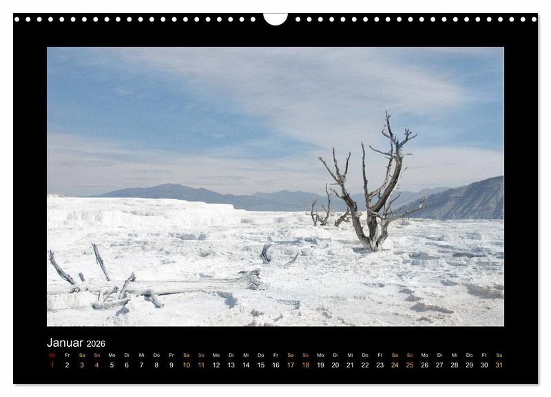 Der Yellowstone Nationalpark ist bekannt für seine Artenvielfalt und Landschaften. Genießen Sie in diesem Kalender eindrucksvolle Naturaufnahmen.
