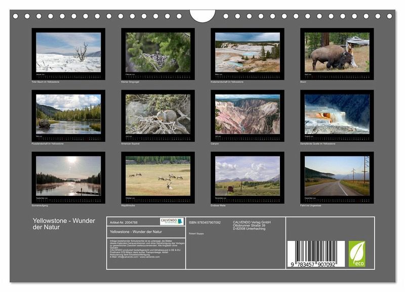 Der Yellowstone Nationalpark ist bekannt für seine Artenvielfalt und Landschaften. Genießen Sie in diesem Kalender eindrucksvolle Naturaufnahmen.