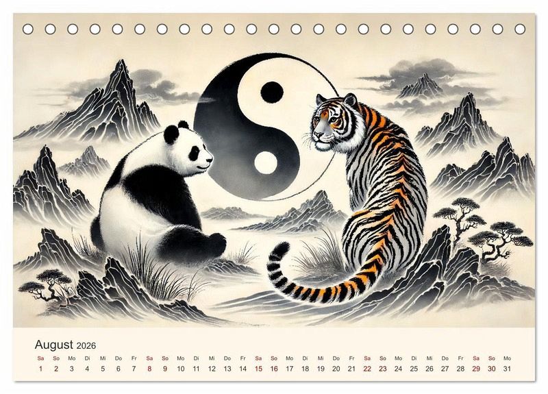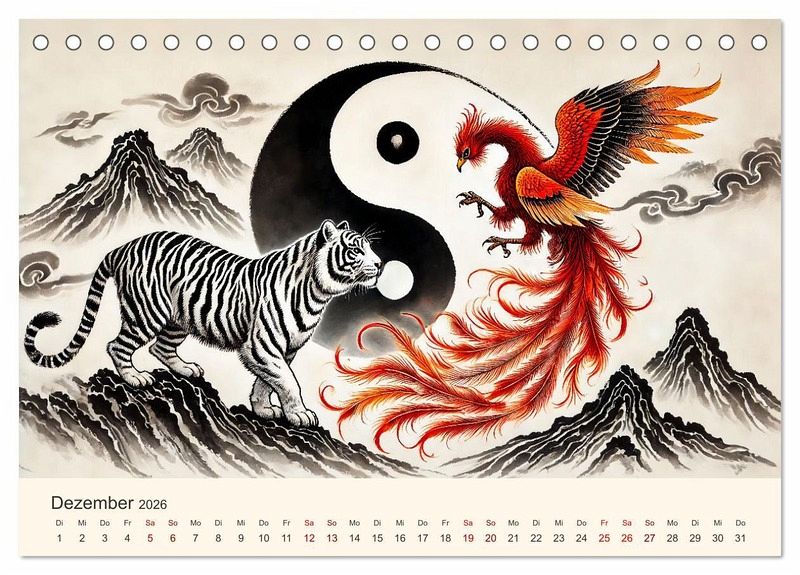 Tauchen Sie ein in die faszinierende Welt der asiatischen Mythen mit "Yin und Yang der Wesen - Asiatische Mythen im Gleichgewicht". Dieser einzigartige KI-generierte Kalender bringt die majestätischen Kreaturen der asiatischen Mythologie wie Drachen, Tiger, Phoenix und andere in einer atemberaubenden Yin-Yang-Darstellung zum Leben. Jede Seite ist ein Kunstwerk, das die Balance zwischen Kraft und Harmonie, Licht und Schatten symbolisiert. Von den kraftvollen, feurigen Drachen bis hin zu den eleganten Tigern und mystischen Phoenixen - dieser Kalender ist perfekt für Liebhaber asiatischer Kunst, Mythologie und spiritueller Symbole.