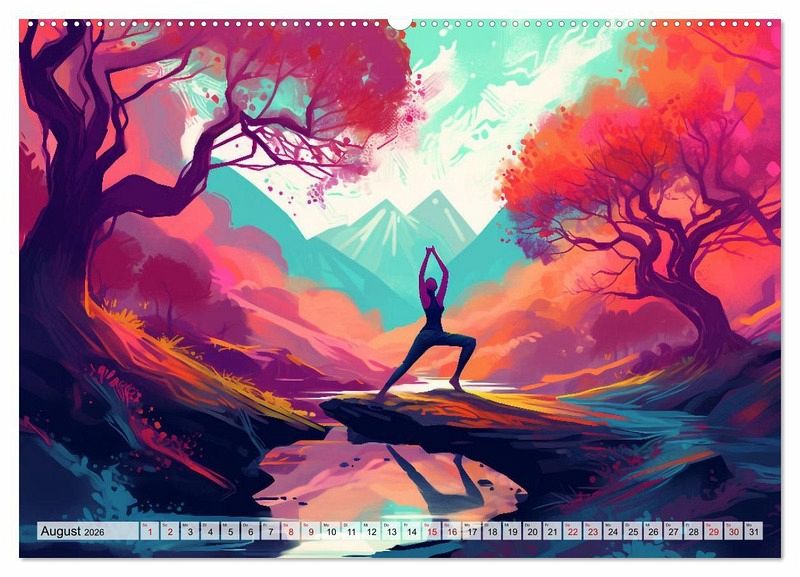 Das Wort Yoga stammt aus dem indischen Sanskrit und bedeutet soviel wie Einheit und Harmonie. Dieser Kalender bietet eine Begleitung für ein Jahr mit gemalten Bildern, die Harmonie mit der Natur, dem Körper und innere Einkehr verkörpern.