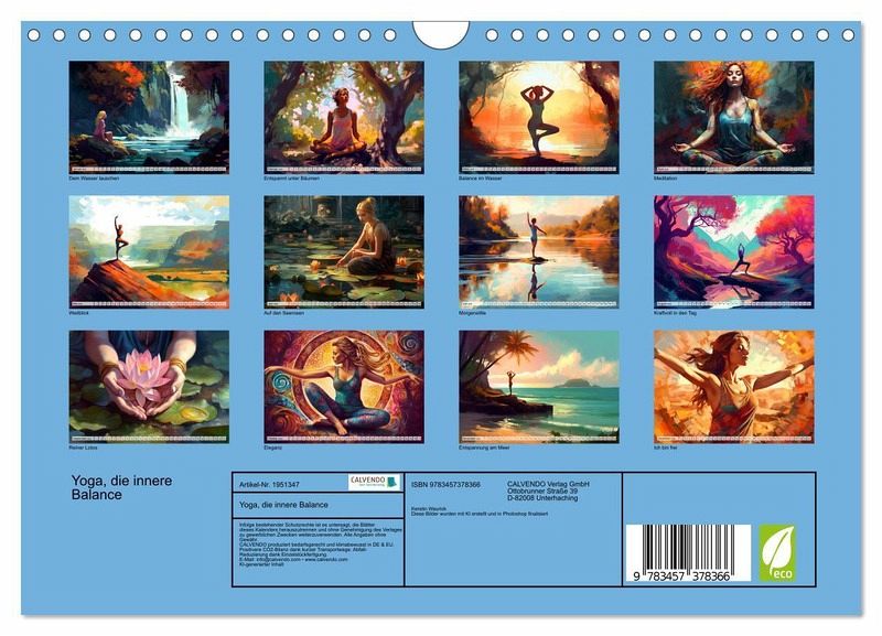 QUALITÄT - Hochwertiger Fotokalender mit 12 wunderschönen Motiven auf lichtbeständigem Bilderdruckpapier, robuste Spiralbindung mit Aufhängebügel.NACHHALTIG - deutliche Abfallreduzierung durch bedarfsgerechte Einzelstückfertigung, umweltfreundliches FSC-zertifiziertes Papier, Produktion in Deutschland, klimabewusste Logistik.PERFEKTES GESCHENK - Kalender für Freunde und Familie, für Kinder und Erwachsene, jung und alt, zu Weihnachten, Geburtstag oder zwischendurch.VIELFALT - Bildkalender in verschiedenen Formaten, z.B. DIN A5, DIN A4, DIN A3 sowie DIN A2. Ob Naturmotiv, Gemälde oder Fotos, ideal für ein persönliches Wohlfühlambiente.Übungen, Meditation und innere Einkehrdurch Yoga von Autor(in): Kerstin Waurick