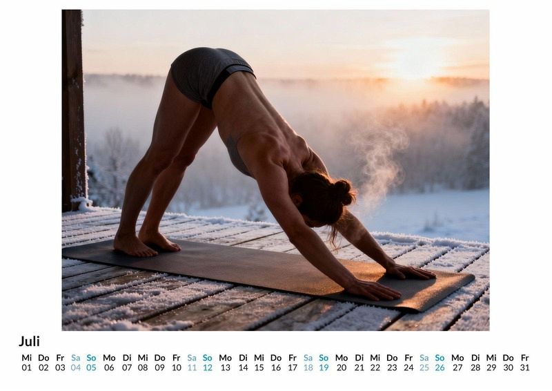 Die Verbindung von Kraft und Anmut findet in der Kunst des Yoga ihre vollendete Form. Der Kalender "Yoga Girls" fängt diese faszinierende Symbiose in zwölf einzigartigen Motiven ein, die den Körper als Ausdruck von Disziplin und Eleganz feiern. Jeder Monat präsentiert eine neue Facette der körperlichen Ästhetik. Dieser Kalender ist eine ausgezeichnete Wahl: Für Liebhaber ästhetischer Darstellungen des menschlichen Körpers. Für Yoga Praktizierende, die Inspiration in anspruchsvollen und eleganten Asanas suchen. Für alle, die einen Wandschmuck mit einer Mischung aus Sportlichkeit und Grazie schätzen. Jeder Monat enthüllt eine neue Pose, die Geschmeidigkeit und Körperbeherrschung zelebriert. Die Bilder, erschaffen durch einen fortschrittlichen, digitalen Gestaltungsprozess, zeigen durchtrainierte Körper in freizügigen und anmutigen Haltungen. Der Fokus liegt auf der reinen Form und der Ästhetik der Bewegung, eingefangen in klaren Kompositionen, die den Betrachter das ganze Jahr über begleiten. Was der Kalender bietet: Zwölf Monatsblätter mit Motiven aus der Welt des Yoga. Ein praktisches Kalendarium für die Jahresplanung. Eine Sammlung von Posen, die Flexibilität und Stärke vereinen. Der "Yoga Girls" Kalender ist mehr als nur ein Zeitmesser; er ist eine jährliche Hommage an die Disziplin und die Schönheit, die aus ihr erwächst. Eine Entdeckungsreise durch die Harmonie des Körpers erwartet den Betrachter.