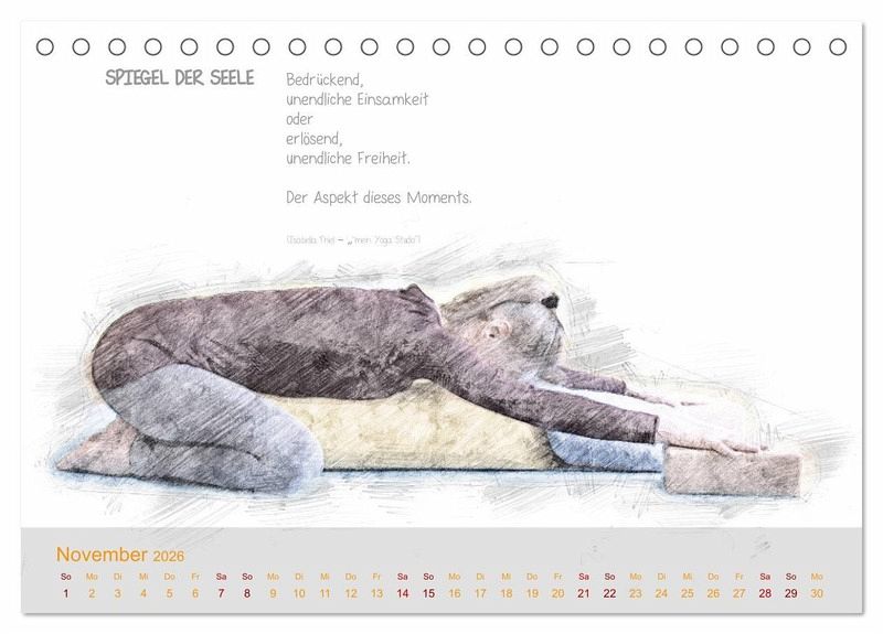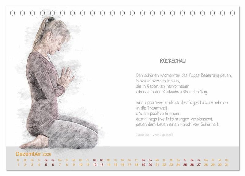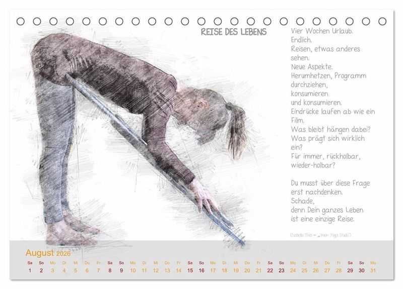 QUALITÄT - Hochwertiger Fotokalender mit 12 wunderschönen Motiven auf lichtbeständigem Bilderdruckpapier, robuste Spiralbindung.NACHHALTIG - deutliche Abfallreduzierung durch bedarfsgerechte Einzelstückfertigung, umweltfreundliches FSC-zertifiziertes Papier, Produktion in Deutschland, klimabewusste Logistik.PERFEKTES GESCHENK - Kalender für Freunde und Familie, für Kinder und Erwachsene, jung und alt, zu Weihnachten, Geburtstag oder zwischendurch.VIELFALT - Bildkalender in verschiedenen Formaten, z.B. DIN A5, DIN A4, DIN A3 sowie DIN A2. Ob Naturmotiv, Gemälde oder Fotos, ideal für ein persönliches Wohlfühlambiente.Yoga meets Prosa von Autor(in): Isabella Thiel