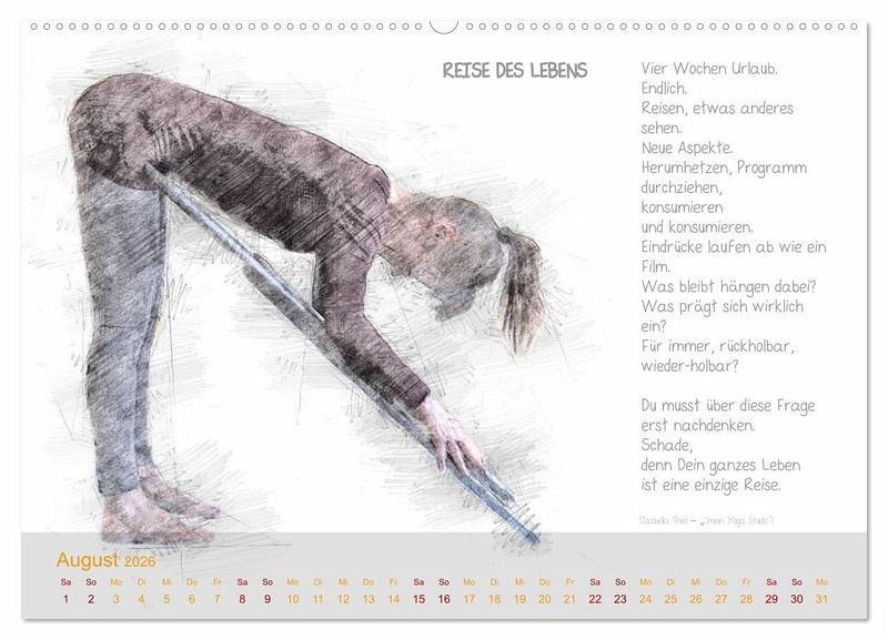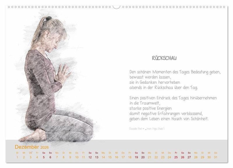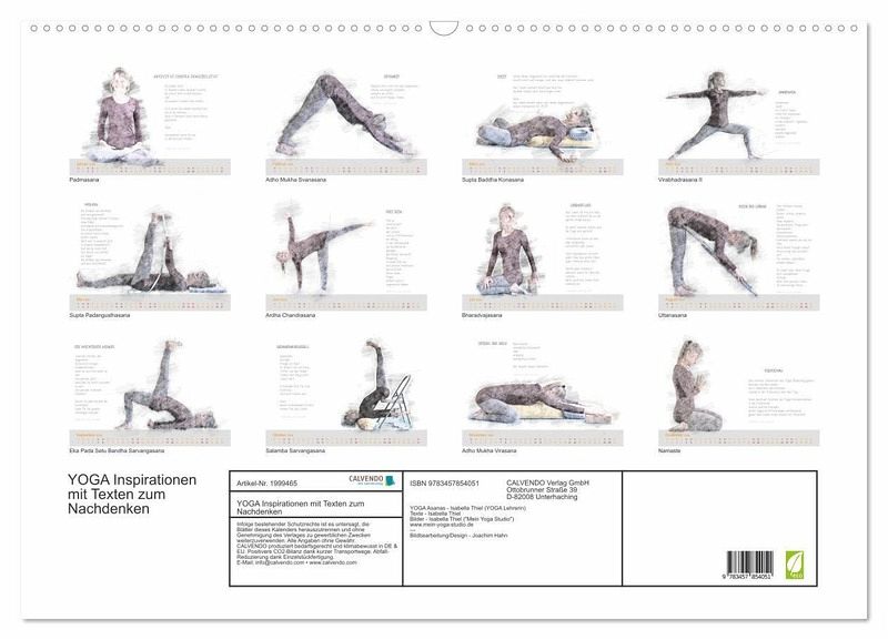 QUALITÄT - Hochwertiger Fotokalender mit 12 wunderschönen Motiven auf lichtbeständigem Bilderdruckpapier, robuste Spiralbindung mit Aufhängebügel.NACHHALTIG - deutliche Abfallreduzierung durch bedarfsgerechte Einzelstückfertigung, umweltfreundliches FSC-zertifiziertes Papier, Produktion in Deutschland, klimabewusste Logistik.PERFEKTES GESCHENK - Kalender für Freunde und Familie, für Kinder und Erwachsene, jung und alt, zu Weihnachten, Geburtstag oder zwischendurch.VIELFALT - Bildkalender in verschiedenen Formaten, z.B. DIN A5, DIN A4, DIN A3 sowie DIN A2. Ob Naturmotiv, Gemälde oder Fotos, ideal für ein persönliches Wohlfühlambiente.Yoga meets Prosa von Autor(in): Isabella Thiel