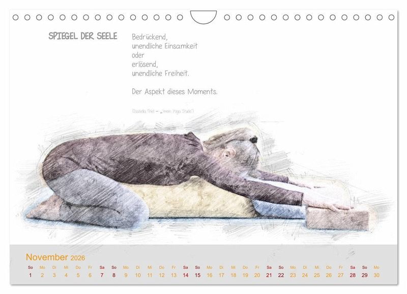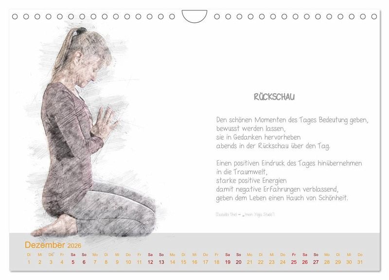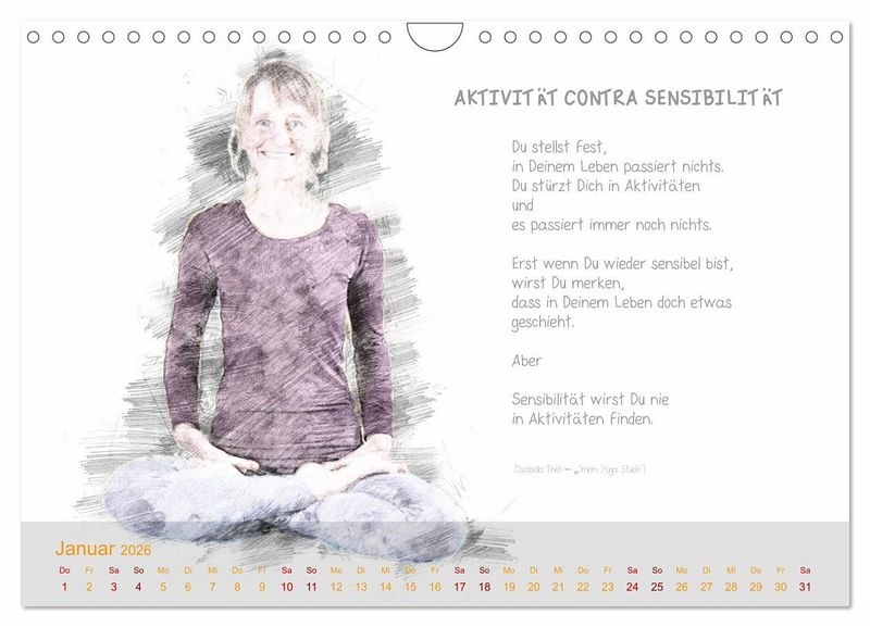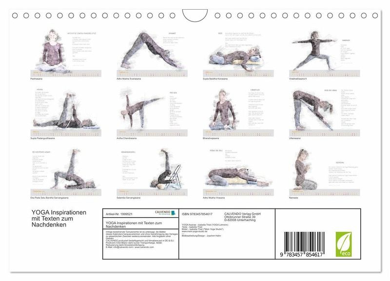 QUALITÄT - Hochwertiger Fotokalender mit 12 wunderschönen Motiven auf lichtbeständigem Bilderdruckpapier, robuste Spiralbindung mit Aufhängebügel.NACHHALTIG - deutliche Abfallreduzierung durch bedarfsgerechte Einzelstückfertigung, umweltfreundliches FSC-zertifiziertes Papier, Produktion in Deutschland, klimabewusste Logistik.PERFEKTES GESCHENK - Kalender für Freunde und Familie, für Kinder und Erwachsene, jung und alt, zu Weihnachten, Geburtstag oder zwischendurch.VIELFALT - Bildkalender in verschiedenen Formaten, z.B. DIN A5, DIN A4, DIN A3 sowie DIN A2. Ob Naturmotiv, Gemälde oder Fotos, ideal für ein persönliches Wohlfühlambiente.Yoga meets Prosa von Autor(in): Isabella Thiel