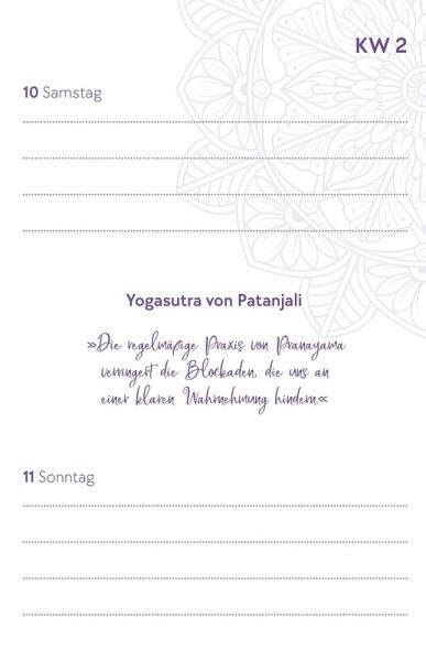 Yoga-Wochenkalender mit Eintragmöglichkeiten