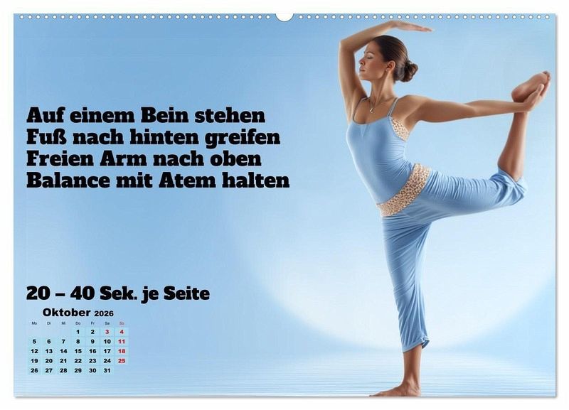Entdecke die Welt von Yoga und Meditation mit diesem inspirierenden Yoga Kalender voller praktischer Übungen und Yoga-Haltungen. Jeden Monat erwarten dich neue Anleitungen für Yogaübungen, Rückenübungen und Achtsamkeitsübungen, die helfen, Körper und Geist in Einklang zu bringen. Perfekt als Geschenk für Frauen oder für alle, die Yoga lernen und regelmäßig meditieren möchten. Dieser Kalender fördert Entspannung, Flexibilität und innere Ruhe und eignet sich ebenso als Achtsamkeitskalender oder Meditationskalender. Übungen sind einfach nachvollziehbar, ideal für Anfänger und Fortgeschrittene. Genieße jeden Moment der Achtsamkeit und bringe Yoga in dein tägliches Leben. Bilder der Übungen wurden mit KI generiert.