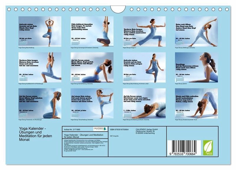 QUALITÄT - Hochwertiger Fotokalender mit 12 wunderschönen Motiven auf lichtbeständigem Bilderdruckpapier, robuste Spiralbindung mit Aufhängebügel.NACHHALTIG - deutliche Abfallreduzierung durch bedarfsgerechte Einzelstückfertigung, umweltfreundliches FSC-zertifiziertes Papier, Produktion in Deutschland, klimabewusste Logistik.PERFEKTES GESCHENK - Kalender für Freunde und Familie, für Kinder und Erwachsene, jung und alt, zu Weihnachten, Geburtstag oder zwischendurch.VIELFALT - Bildkalender in verschiedenen Formaten, z.B. DIN A5, DIN A4, DIN A3 sowie DIN A2. Ob Naturmotiv, Gemälde oder Fotos, ideal für ein persönliches Wohlfühlambiente.Yoga Kalender mit praktischen Yoga-Übungen und Meditationen für das ganze Jahr. Perfekt für Achtsamkeit, Rückenübungen und Entspannung. Ideal als Geschenk für Frauen und alle, die Yoga lernen wollen. von Autor(in): Michael Bihlmayer