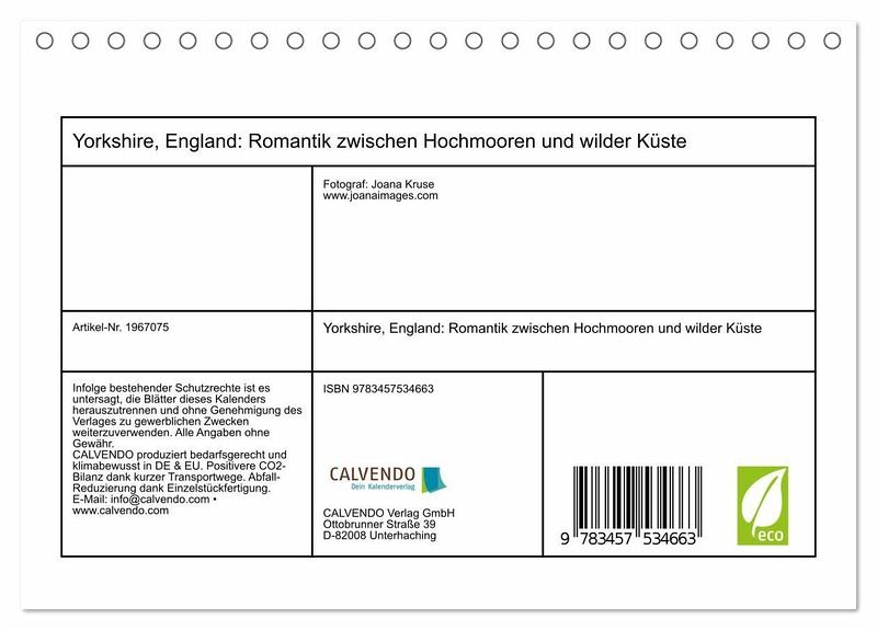 QUALITÄT - Hochwertiger Fotokalender mit 12 wunderschönen Motiven auf lichtbeständigem Bilderdruckpapier, robuste Spiralbindung.NACHHALTIG - deutliche Abfallreduzierung durch bedarfsgerechte Einzelstückfertigung, umweltfreundliches FSC-zertifiziertes Papier, Produktion in Deutschland, klimabewusste Logistik.PERFEKTES GESCHENK - Kalender für Freunde und Familie, für Kinder und Erwachsene, jung und alt, zu Weihnachten, Geburtstag oder zwischendurch.VIELFALT - Bildkalender in verschiedenen Formaten, z.B. DIN A5, DIN A4, DIN A3 sowie DIN A2. Ob Naturmotiv, Gemälde oder Fotos, ideal für ein persönliches Wohlfühlambiente.Zwischen Schafen und Hochmooren zu Fischern und Schmugglern: Yorkshirein Nordengland von Autor(in): Joana Kruse