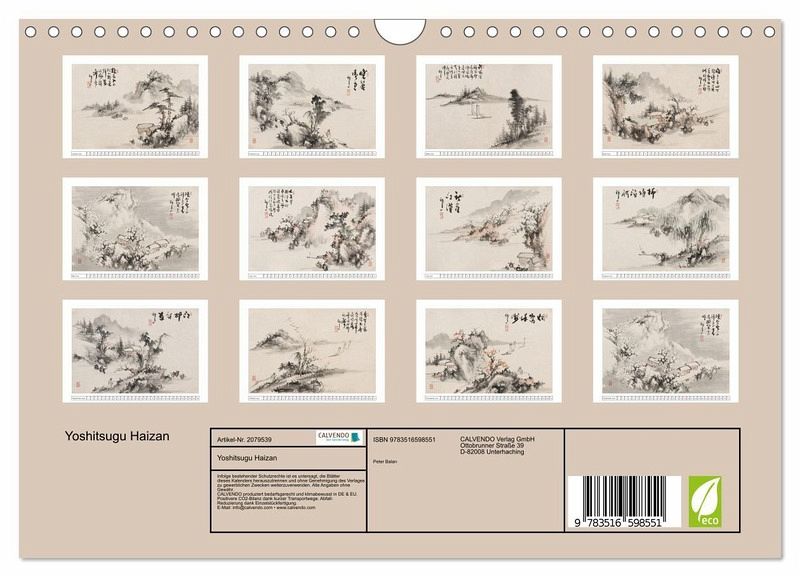 Dieser hochwertige Kalender präsentiert ausgewählte Motive aus dem "Album of Paintings by Haizan", einem Meisterwerk des japanischen Malers Yoshitsugu Haizan (1846-1915). Feinste Tuschemalerei, zarte Farben und poetische Naturdarstellungen spiegeln die Ästhetik der Nanga-Schule und die tiefe Harmonie von Kunst und Natur wider. Jeder Monat zeigt ein neues Detail aus Haizans ruhiger, kontemplativer Bildwelt - ideal für Liebhaber klassischer japanischer Kunst und zeitloser Eleganz.