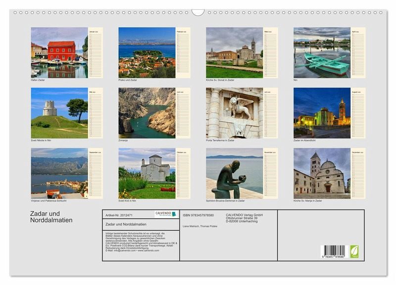 Die Region um Zadar ist reich an historischem Erbe und wunderschöner Natur. Entdecken Sie mit abwechslungsreichen Bildern in diesem Planer dieses schöne Gebiet im Norden von Dalmatien.