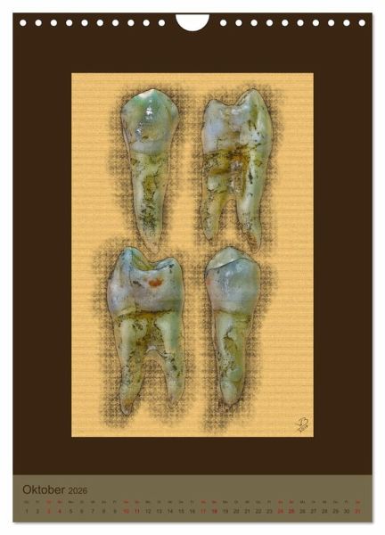 QUALITÄT - Hochwertiger Fotokalender mit 12 wunderschönen Motiven auf lichtbeständigem Bilderdruckpapier, robuste Spiralbindung mit Aufhängebügel.NACHHALTIG - deutliche Abfallreduzierung durch bedarfsgerechte Einzelstückfertigung, umweltfreundliches FSC-zertifiziertes Papier, Produktion in Deutschland, klimabewusste Logistik.PERFEKTES GESCHENK - Kalender für Freunde und Familie, für Kinder und Erwachsene, jung und alt, zu Weihnachten, Geburtstag oder zwischendurch.VIELFALT - Bildkalender in verschiedenen Formaten, z.B. DIN A5, DIN A4, DIN A3 sowie DIN A2. Ob Naturmotiv, Gemälde oder Fotos, ideal für ein persönliches Wohlfühlambiente.Fotografien von echten Zähnen mit Photoshop künstlerisch verfremdet. von Autor(in): Baisch Werner